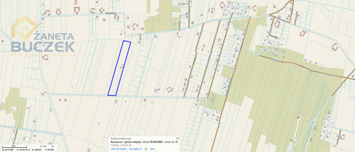 Na sprzedaż położona we wsi Pasikonie w województwie mazowieckim, w powiecie warszawskim zachodnim, w gminie Kampinos.Działka stanowi małe gospodarstwo o powierzchni 2,89 ha, budynki nadal są użytkowane, dom jest zamieszkały, natomiast nadaje się do generalnego remontu.